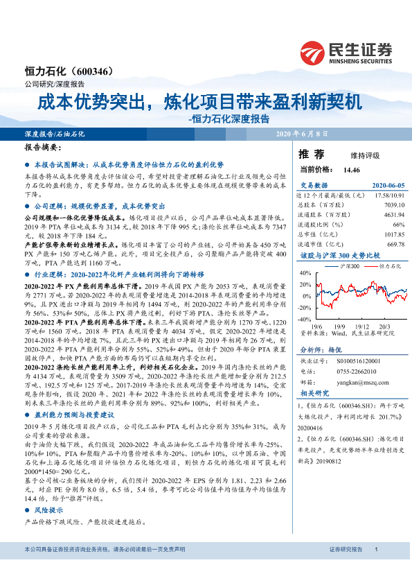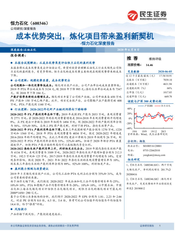 【民生证券】【20200608】恒力石化深度报告:成本优势突出,炼化项目带来盈利新契机-36页