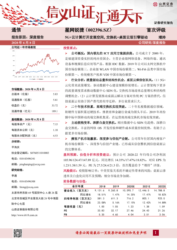【山西证券】【20200608】5G+云计算打开发展空间,交换机+桌面云双引擎驱动-20页
