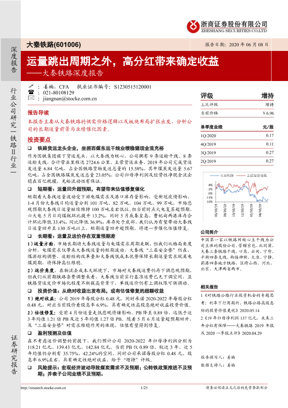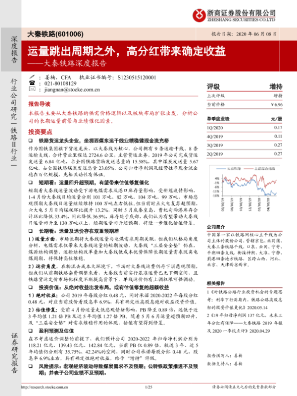 【浙商证券】【20200608】大秦铁路深度报告:运量跳出周期之外,高分红带来确定收益-25页