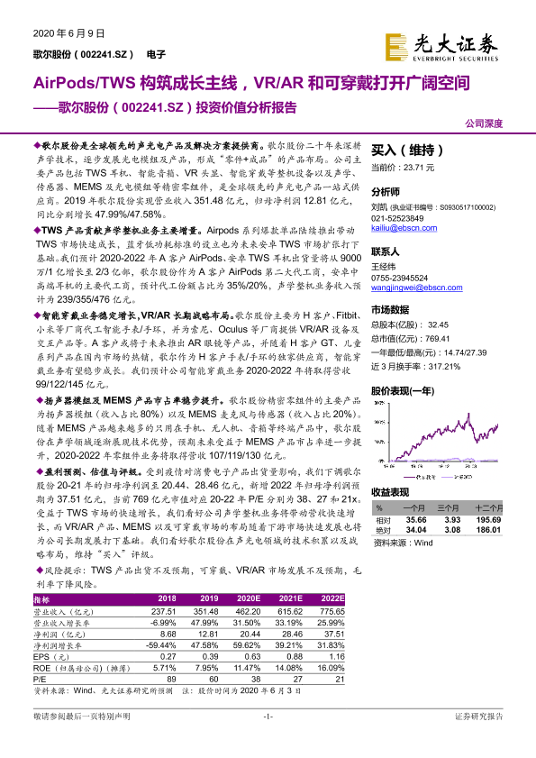 【光大证券】【20200609】20200609-光大证券-歌尔股份-002241.SZ-投资价值分析报告:AirPods TWS构筑成长主线,VR AR和可穿戴打开广阔空间-43页