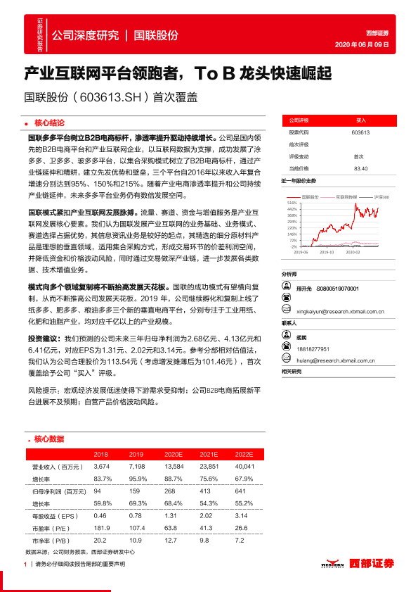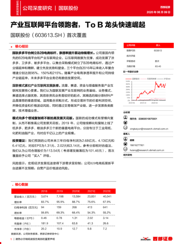 【西部证券】【20200609】20200609-西部证券-国联股份-603613.SH-首次覆盖:产业互联网平台领跑者,To B龙头快速崛起-33页