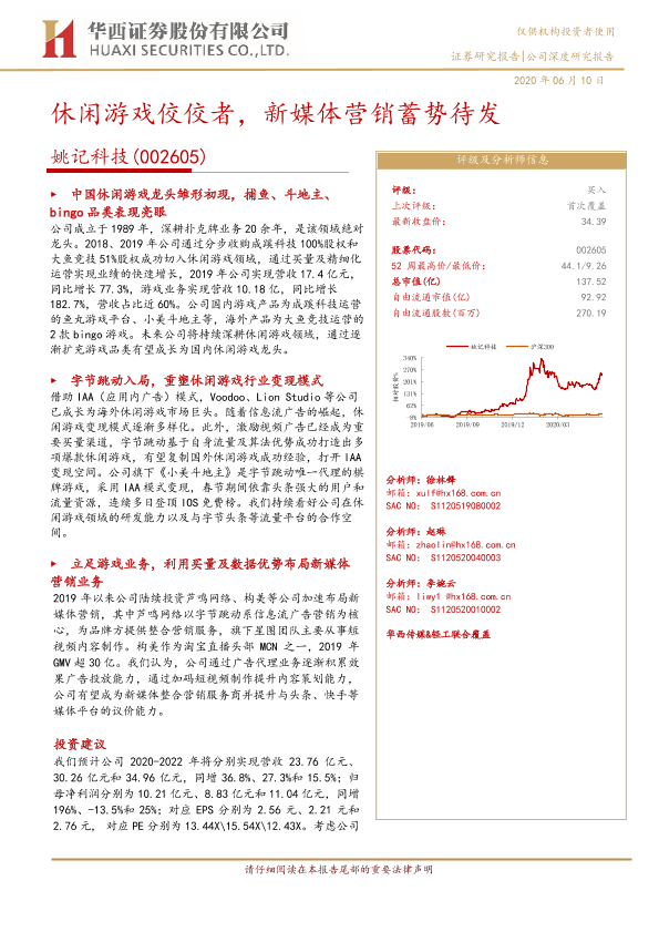 【华西证券】【20200610】20200610-华西证券-姚记科技-002605.SZ-休闲游戏佼佼者,新媒体营销蓄势待发-40页