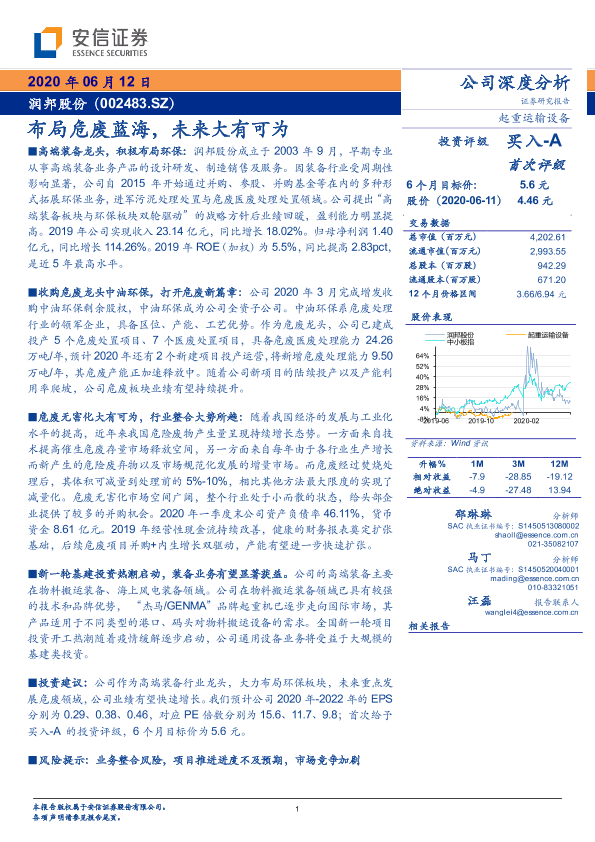 危废处理 并购 润邦股份 环保业务 高端装备