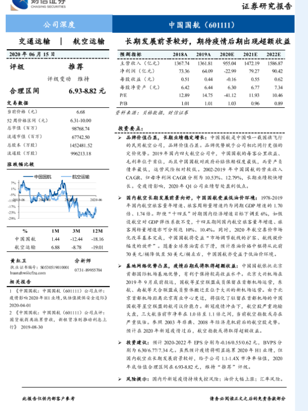 【财信证券】【20200615】中国国航:长期发展前景较好,期待疫情后期出现超额收益-20页