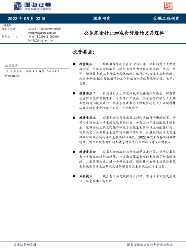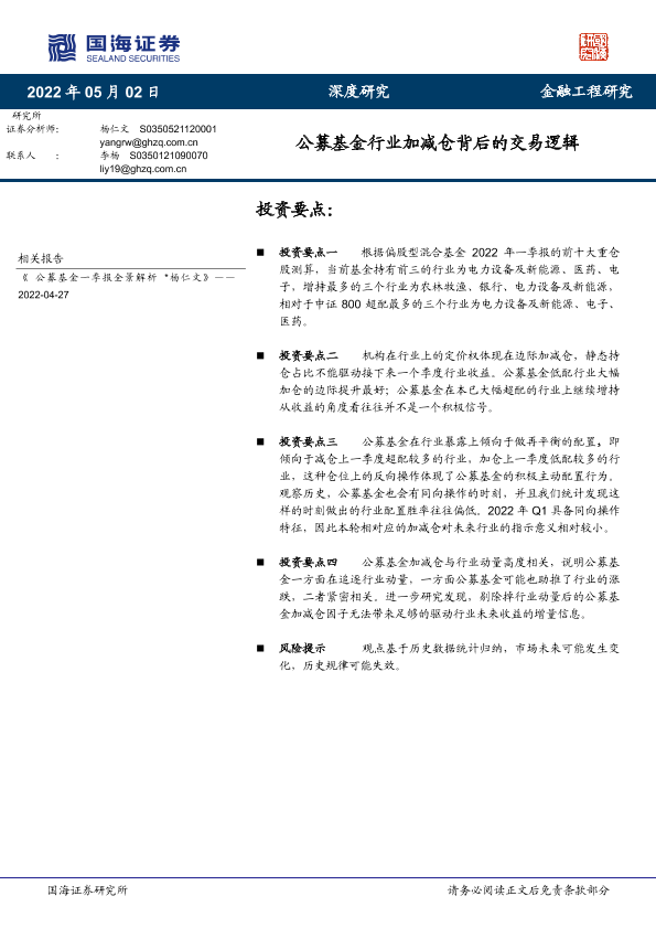 【国海证券】【20220502】公募基金行业加减仓背后的交易逻辑-16页