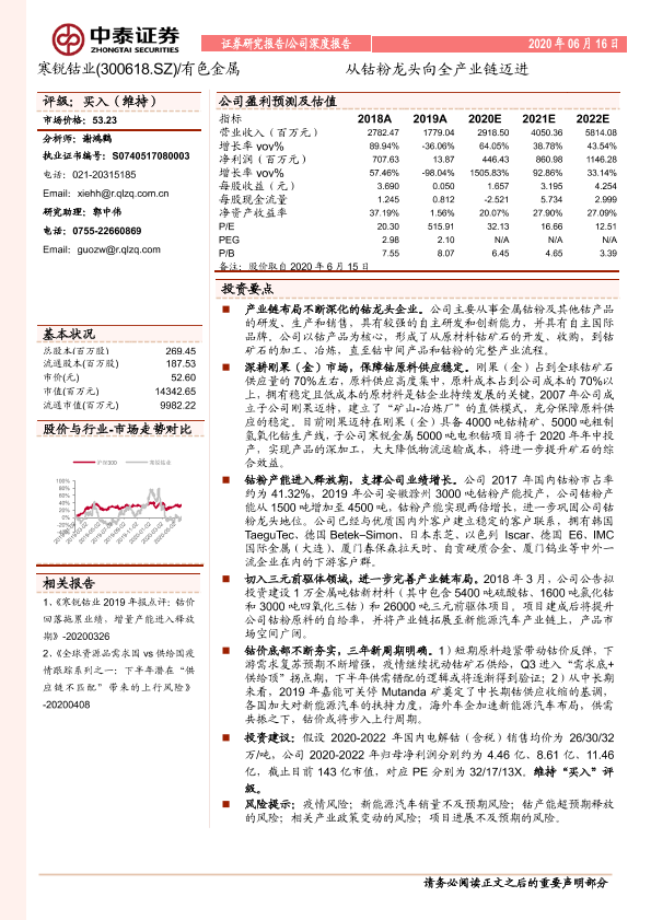 【中泰证券】【20200616】寒锐钴业-从钴粉龙头向全产业链迈进-26页