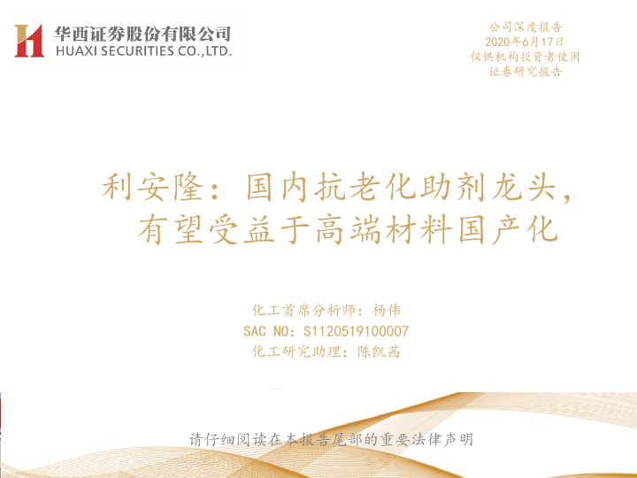 【华西证券】【20200617】利安隆:国内抗老化助剂龙头,有望受益于高端材料国产化-23页