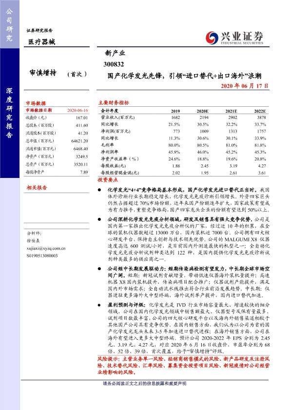 【兴业证券】【20200617】国产化学发光先锋,引领“进口替代+出口海外”浪潮-46页