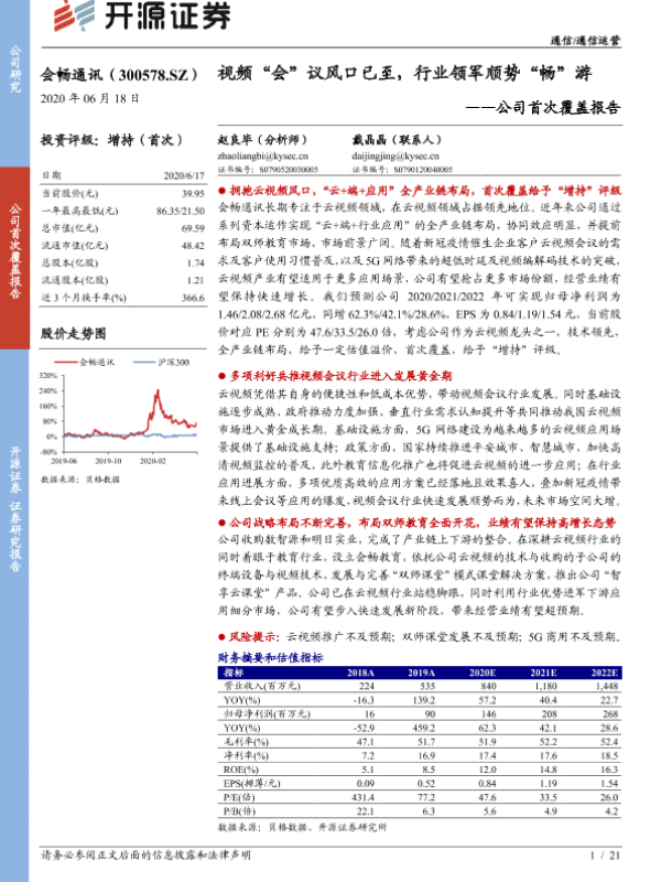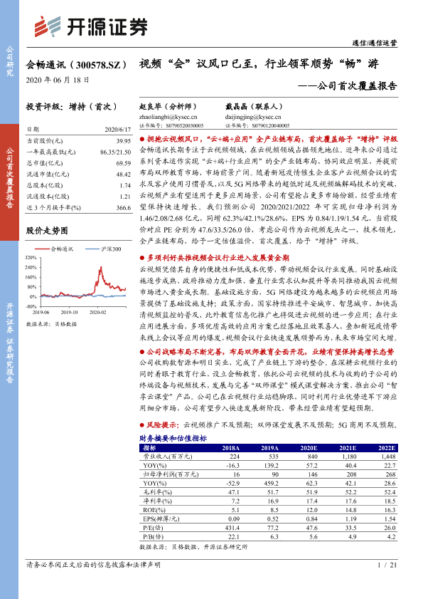 【开源证券】【20200618】会畅通讯-300578.SZ-公司首次覆盖报告:视频“会”议风口已至,行业领军顺势“畅”游-21页