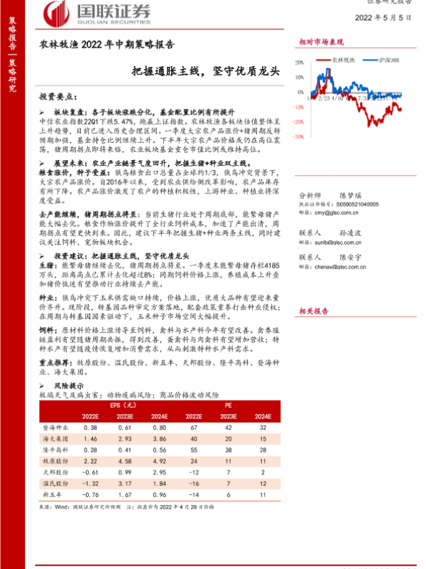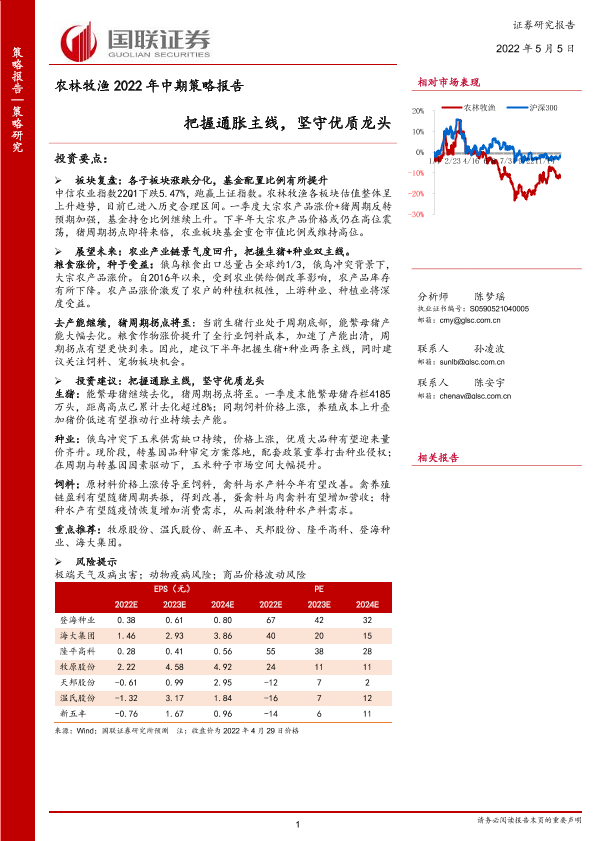 【国联证券】【20220505】农林牧渔行业2022年中期策略报告:把握通胀主线,坚守优质龙头-28页