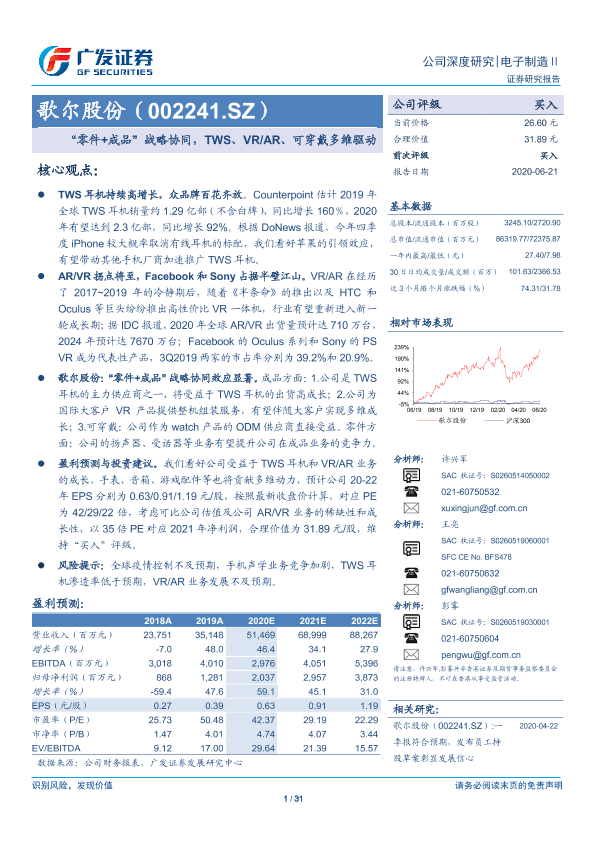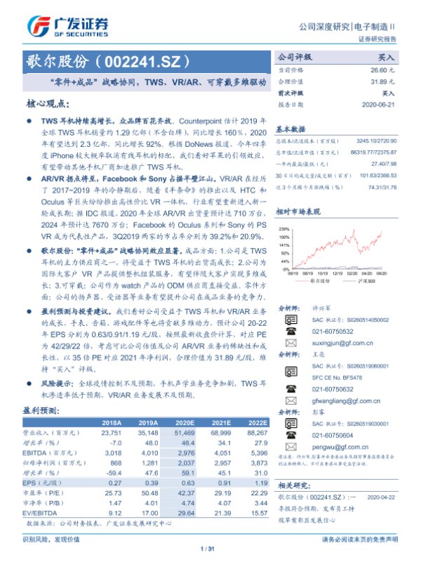 【广发证券】【20200621】歌尔股份:“零件+成品”战略协同,TWS、VR-AR、可穿戴多维驱动-31页