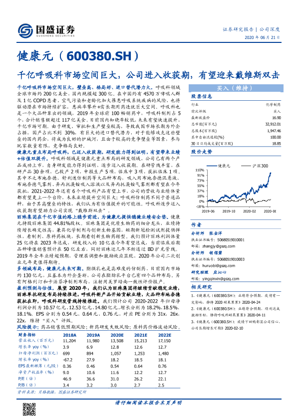 业绩预测 健康元 医药研发 呼吸科市场 进口替代