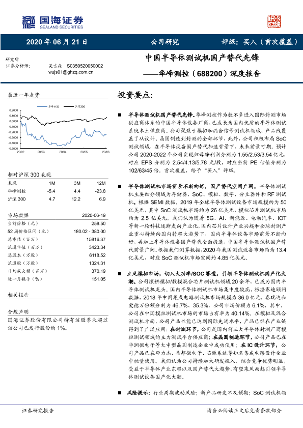 【国海证券】【20200621】中国半导体测试机国产替代先锋——华峰测控(688200)深度报告-33页