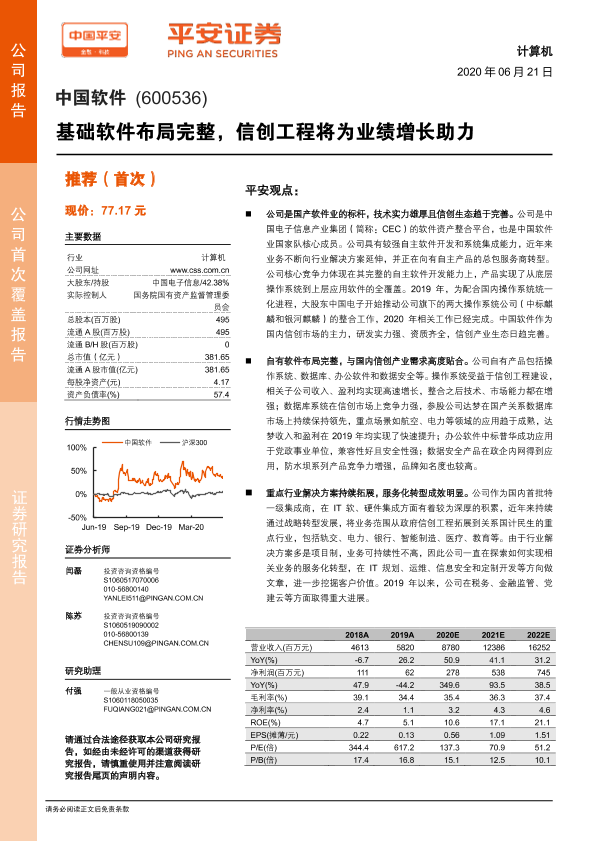 【平安证券】【20200621】中国软件-基础软件布局完整,信创工程将为业绩增长助力-31页
