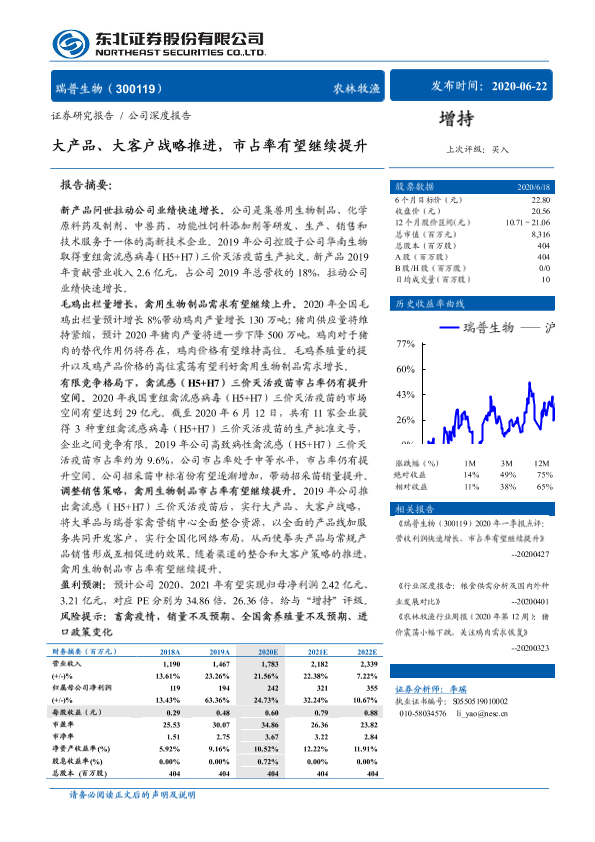 【东北证券】【20200622】瑞普生物-300119.SZ-大产品、大客户战略推进,市占率有望继续提升-33页