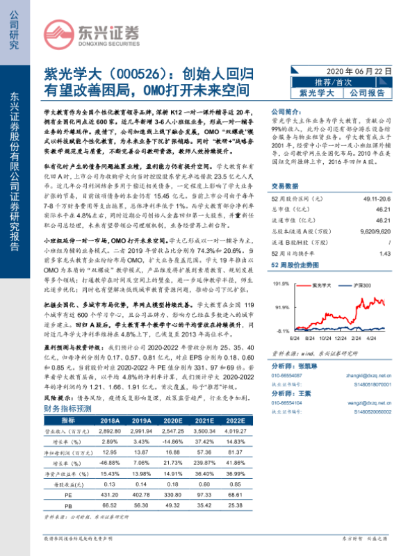 【东兴证券】【20200622】紫光学大(000526):创始人回归有望改善困局,OMO打开未来空间-21页
