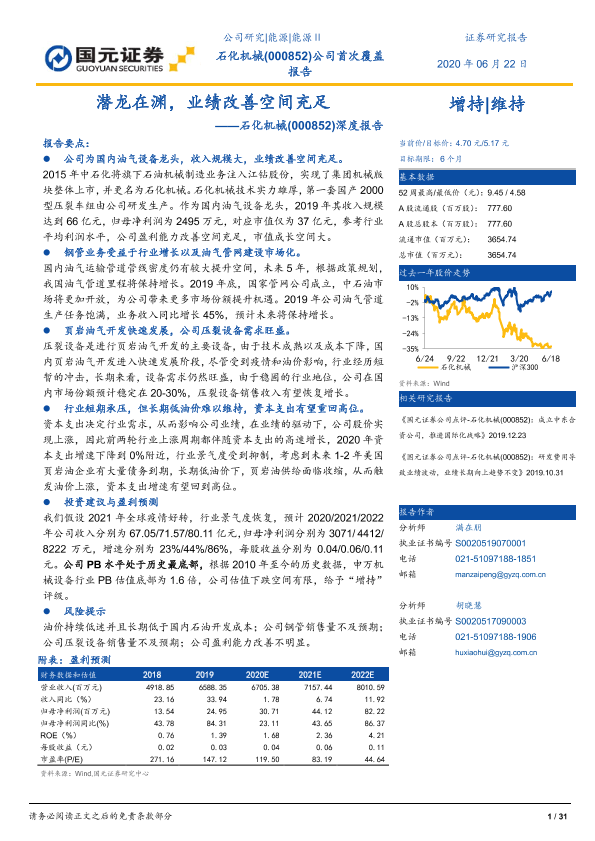 【国元证券】【20200622】潜龙在渊,业绩改善空间充足——石化机械(000852)深度报告-31页