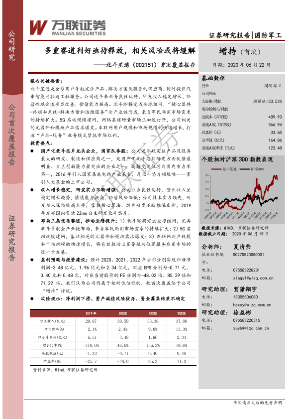 【万联证券】【20200622】20200622-万联证券-北斗星通-002151.SZ-首次覆盖报告:多重赛道利好亟待释放,相关风险或将缓解-24页