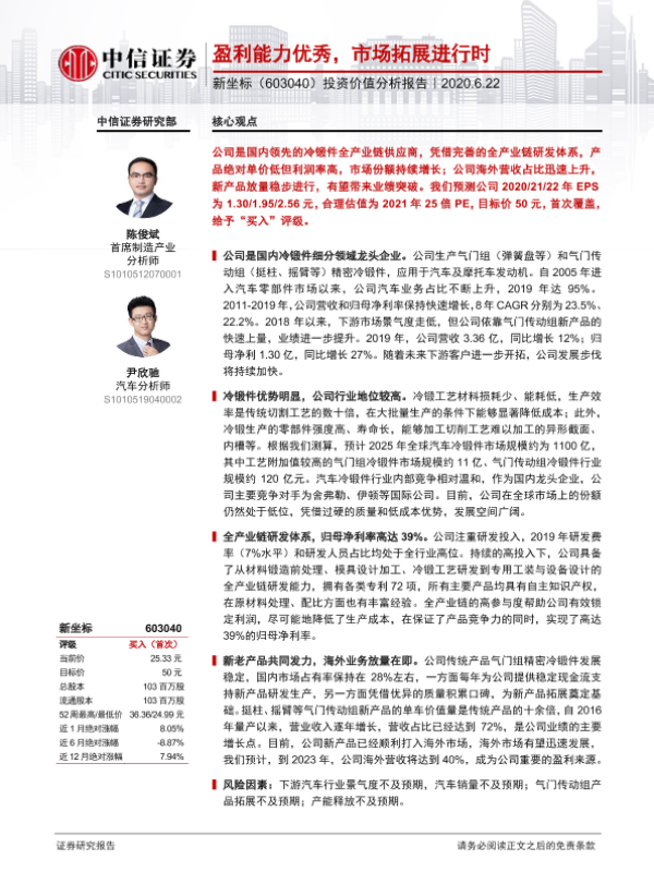 【中信证券】【20200622】20200622-中信证券-新坐标-603040.SH-投资价值分析报告:盈利能力优秀,市场拓展进行时-24页
