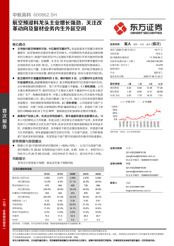 【东方证券】【20200623】中航高科-600862.SH-航空预浸料龙头主业增长强劲,关注改革动向及复材业务内生外延空间-27页