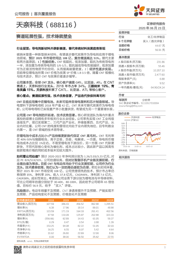 天奈科技 导电剂 新材料 碳纳米管 锂电池