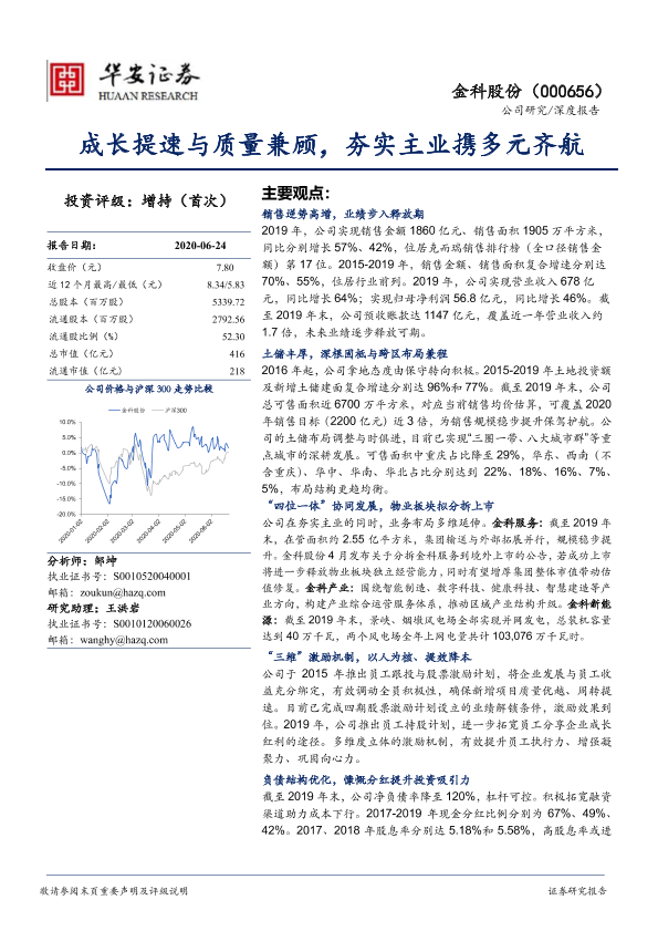 土储布局 房地产 物业分拆 金科股份 销售增长