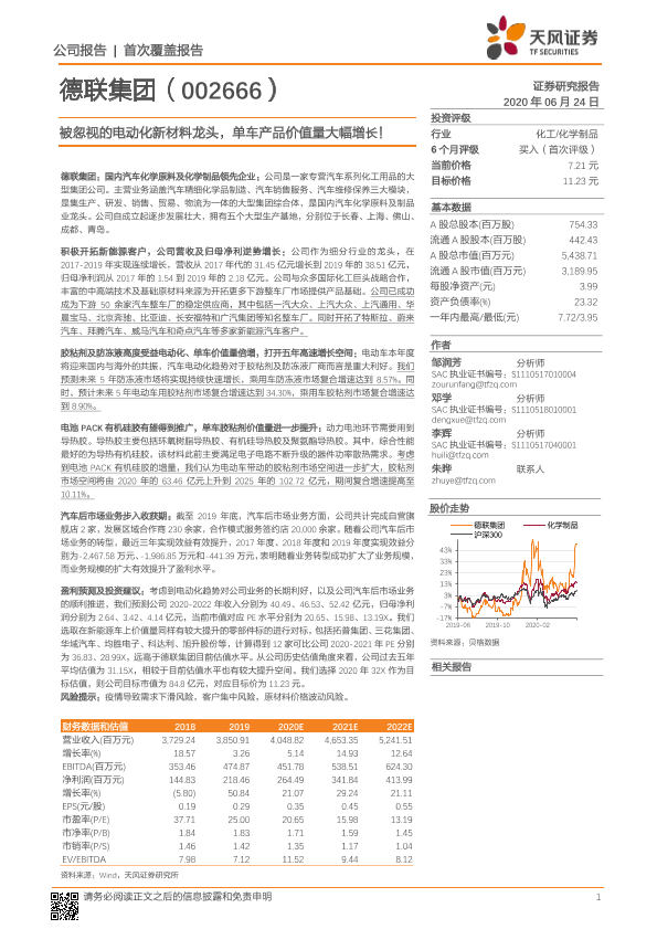 【天风证券】【20200624】20200624-天风证券-德联集团-002666.SZ-被忽视的电动化新材料龙头,单车产品价值量大幅增长!-21页