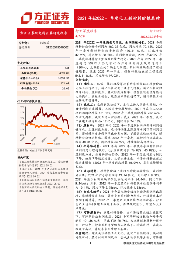 【方正证券】【20220504】2021年&2022一季度化工新材料财报总结-36页