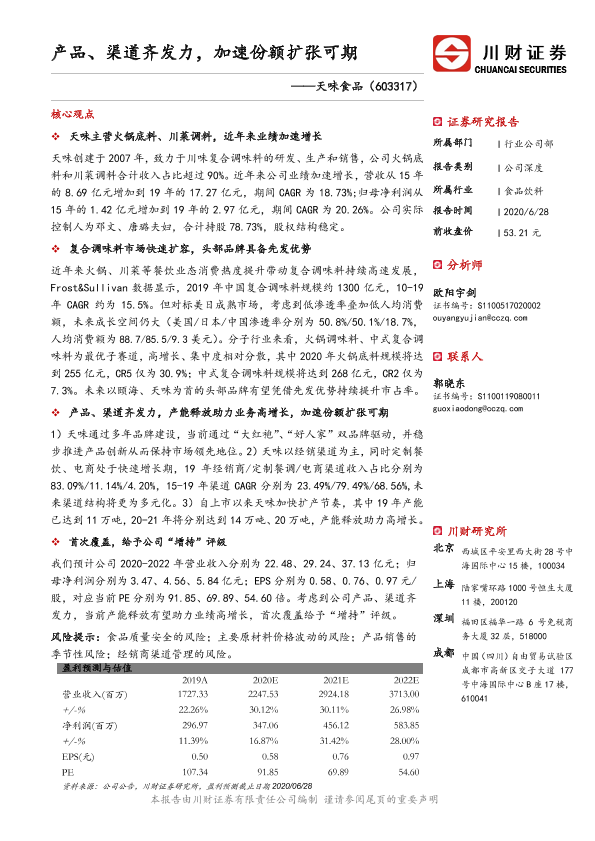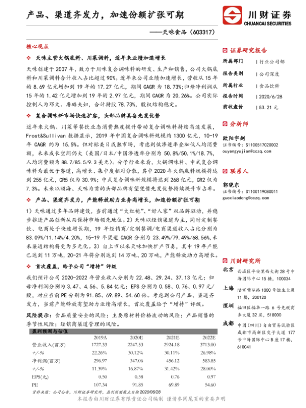 业绩增长 复合调味料 天味食品 市场份额 渠道扩展