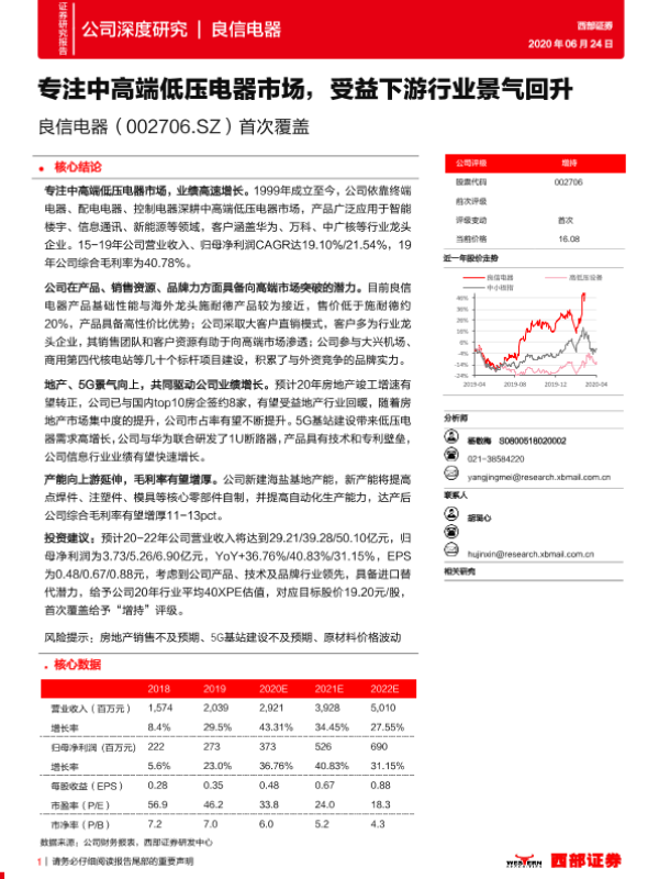 【西部证券】【20200624】专注中高端低压电器市场,受益下游行业景气回升-64页