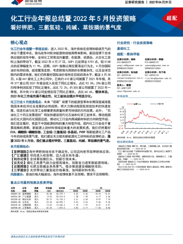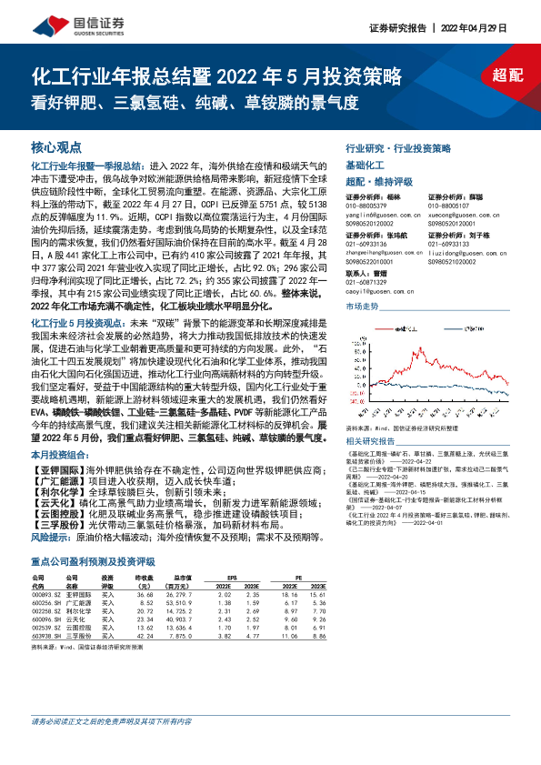 【国信证券】【20220429】化工行业年报总结暨2022年5月投资策略:看好钾肥、三氯氢硅、纯碱、草铵膦的景气度-25页