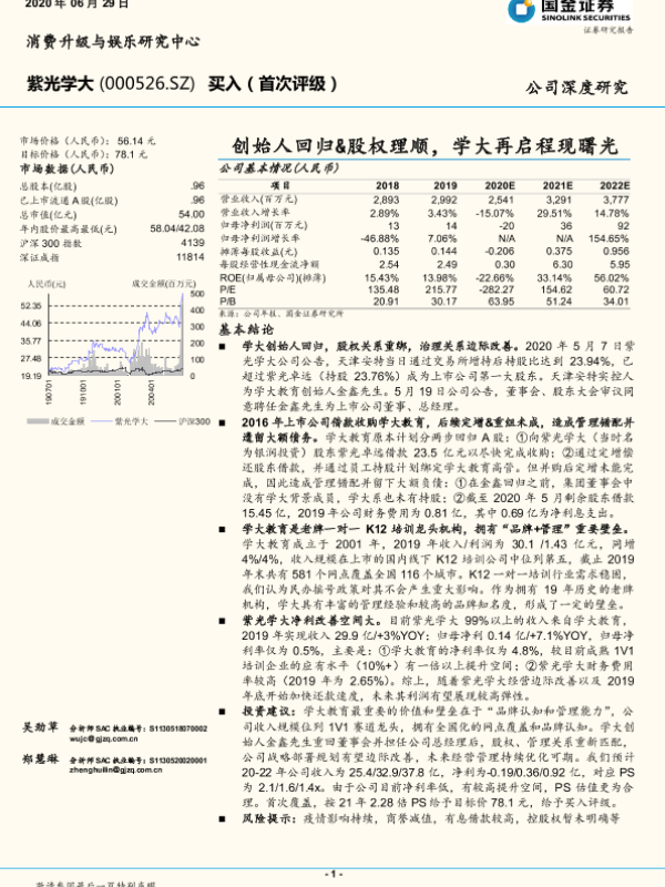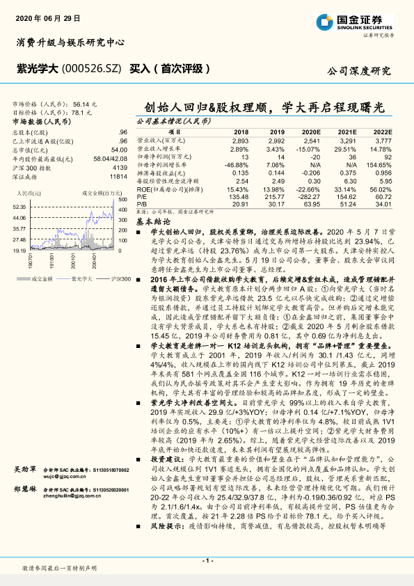 【国金证券】【20200629】紫光学大-创始人回归&股权理顺,学大再启程现曙光-25页