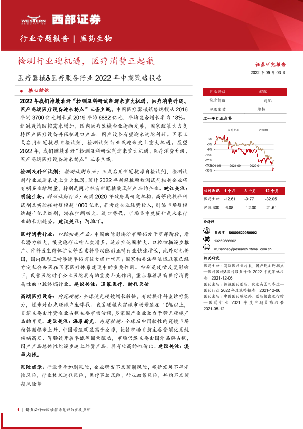 【西部证券】【20220503】医疗器械&医疗服务行业2022年中期策略报告:检测行业迎机遇,医疗消费正起航-25页