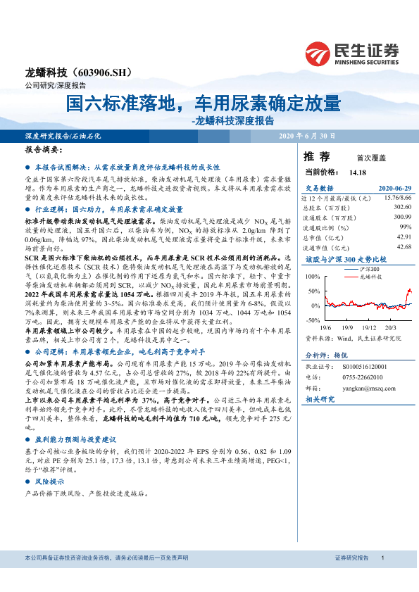 【民生证券】【20200630】龙蟠科技深度报告:国六标准落地,车用尿素确定放量-20页