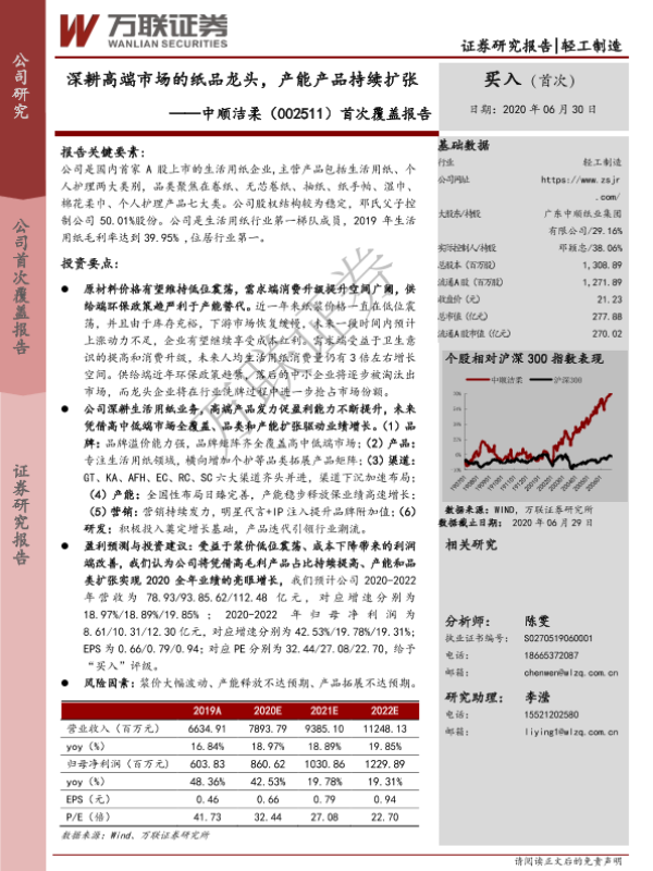 【万联证券】【20200630】20200630-万联证券-中顺洁柔-002511.SZ-首次覆盖报告:深耕高端市场的纸品龙头,产能产品持续扩张-40页