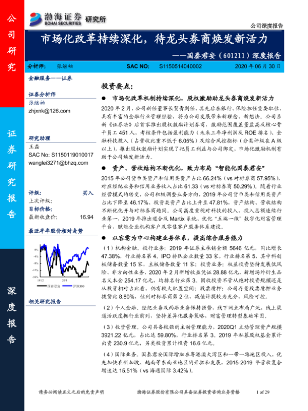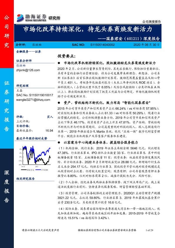 【渤海证券】【20200630】20200630-渤海证券-国泰君安-601211.SH-深度报告:市场化改革持续深化,待龙头券商焕发新活力-29页