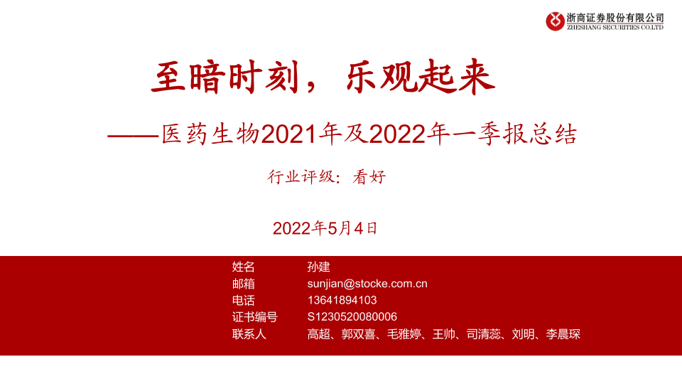 【浙商证券】【20220504】医药生物行业2021年及2022年一季报总结:至暗时刻,乐观起来-73页