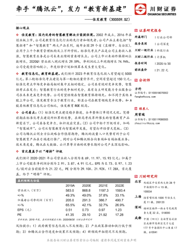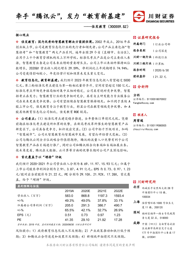 【川财证券】【20200630】牵手“腾讯云”,发力“教育新基建”-29页