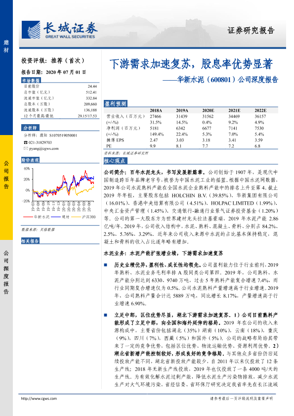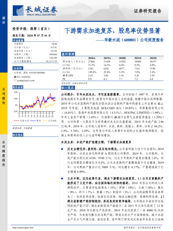 【长城证券】【20200701】20200701-长城证券-华新水泥-600801.SH-公司深度报告:下游需求加速复苏,股息率优势显著-34页
