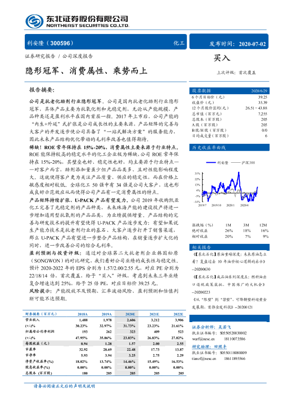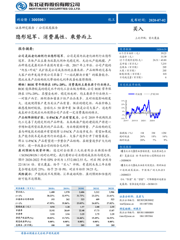 【东北证券】【20200702】20200702-东北证券-利安隆-300596.SZ-隐形冠军、消费属性、乘势而上-29页