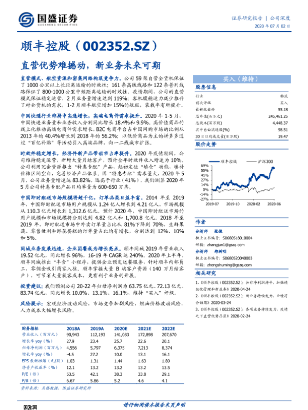 【国盛证券】【20200702】顺丰控股-002352.SZ-直营优势难撼动,新业务未来可期-31页