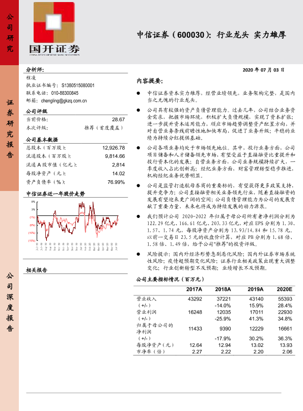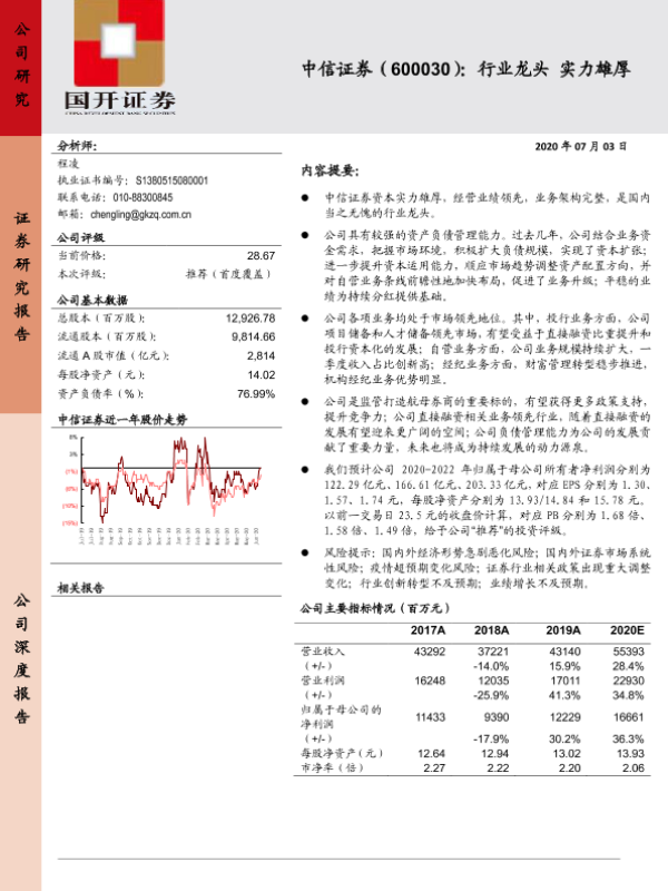 【国开证券】【20200703】中信证券(600030):行业龙头实力雄厚-22页