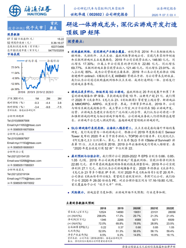 【海通证券】【20200703】20200703-海通证券-世纪华通-002602.SZ-公司研究报告:研运一体游戏龙头,深化云游戏开发打造顶级IP矩阵-21页
