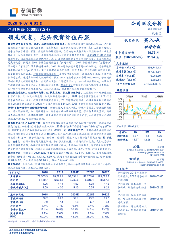 【安信证券】【20200703】20200703-安信证券-伊利股份-600887.SH-领先恢复,龙头投资价值凸显-21页