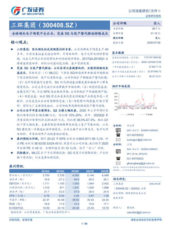 【广发证券】【20200705】全球领先电子陶瓷平台企业,受益5G与国产替代驱动持续成长-33页