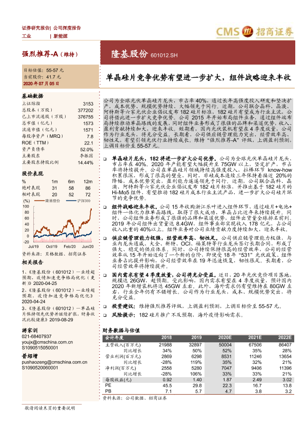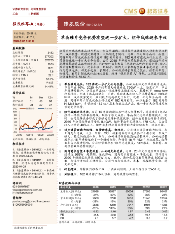 【海通证券】【20200705】隆基股份-单晶硅片竞争优势有望进一步扩大,组件战略迎来丰收-25页