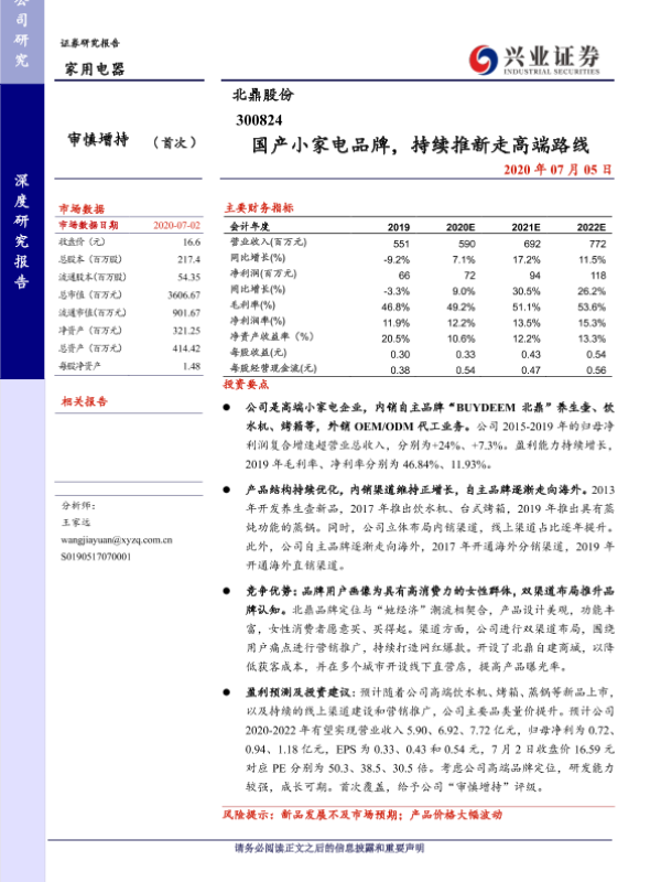 兴业证券 小家电 市场分析 财务预测 高端品牌