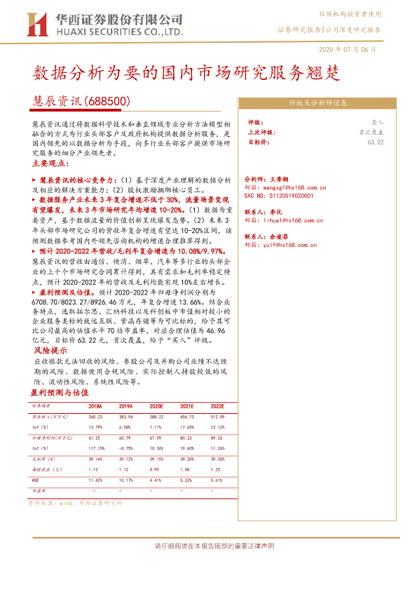 【华西证券】【20200706】慧辰资讯-688500.SH-数据分析为要的国内市场研究服务翘楚-24页