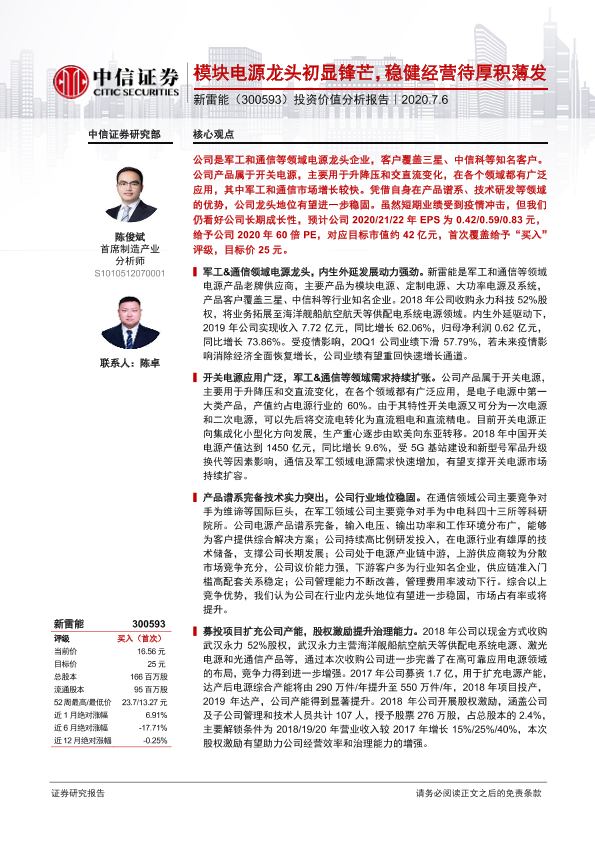 【中信证券】【20200706】20200706-中信证券-新雷能-300593.SZ-投资价值分析报告:模块电源龙头初显锋芒,稳健经营待厚积薄发-36页