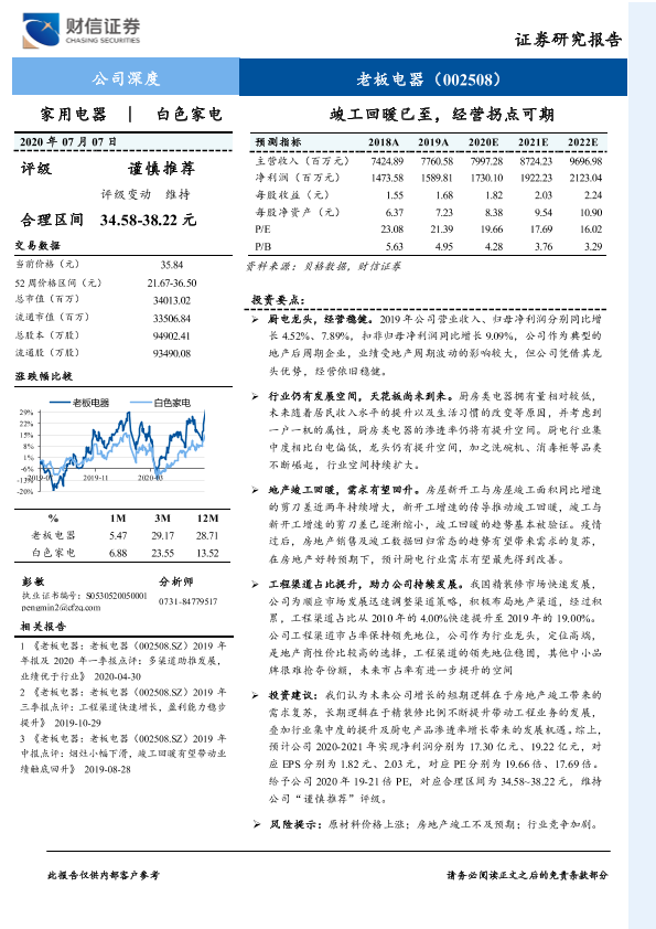 【财信证券】【20200707】20200707-财信证券-老板电器-002508.SZ-竣工回暖已至,经营拐点可期-20页